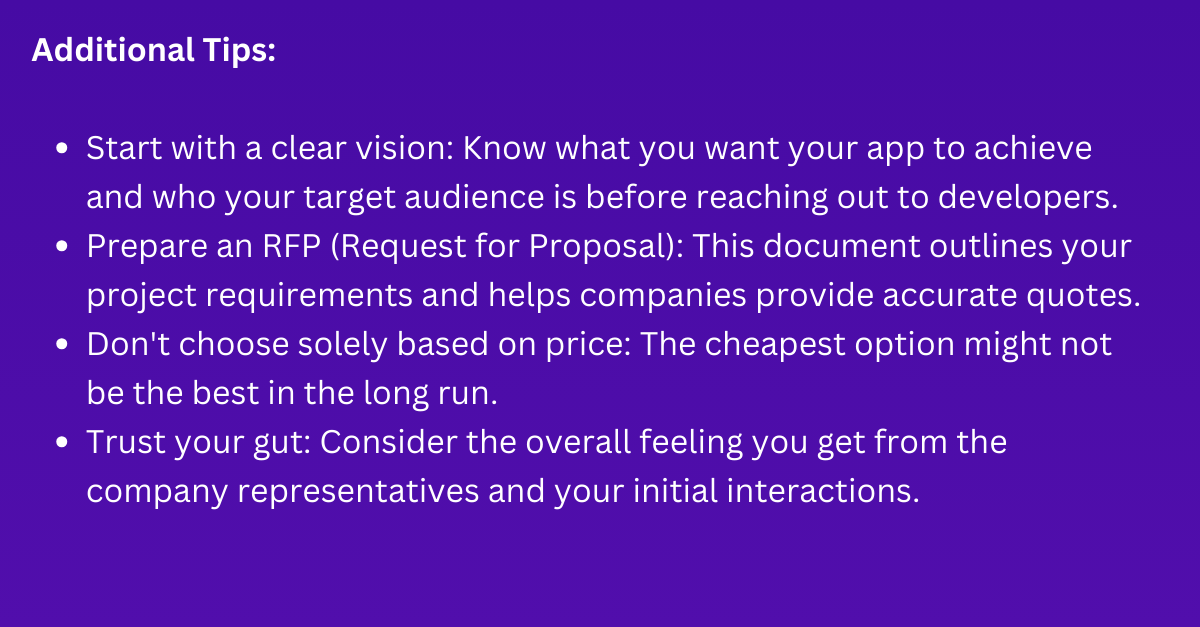 - Start with a clear vision: Know what you want your app to achieve and who your target audience is before reaching out to developers.